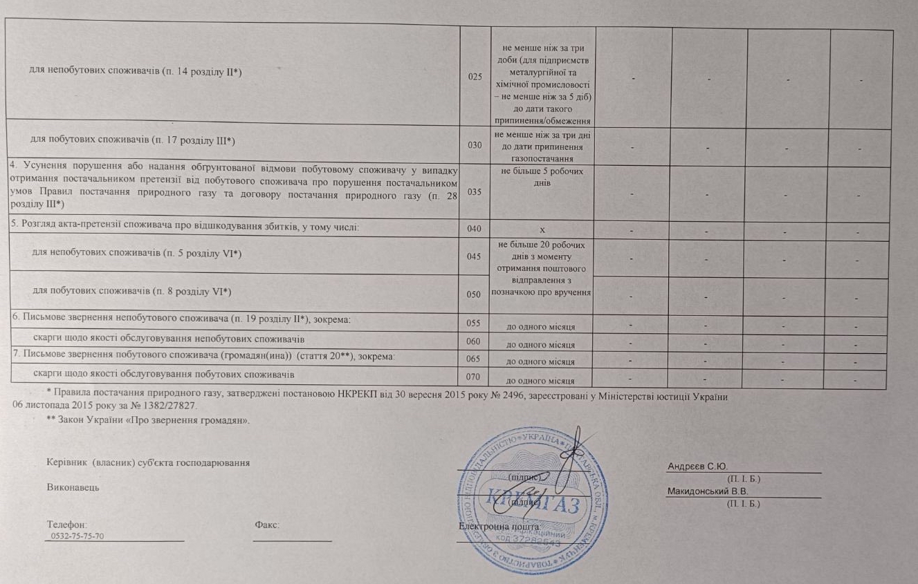 (згідно Постанови НКРЕКП від 30.09.2015 року № 2496 «Про затвердження Правил постачання природного газу»)