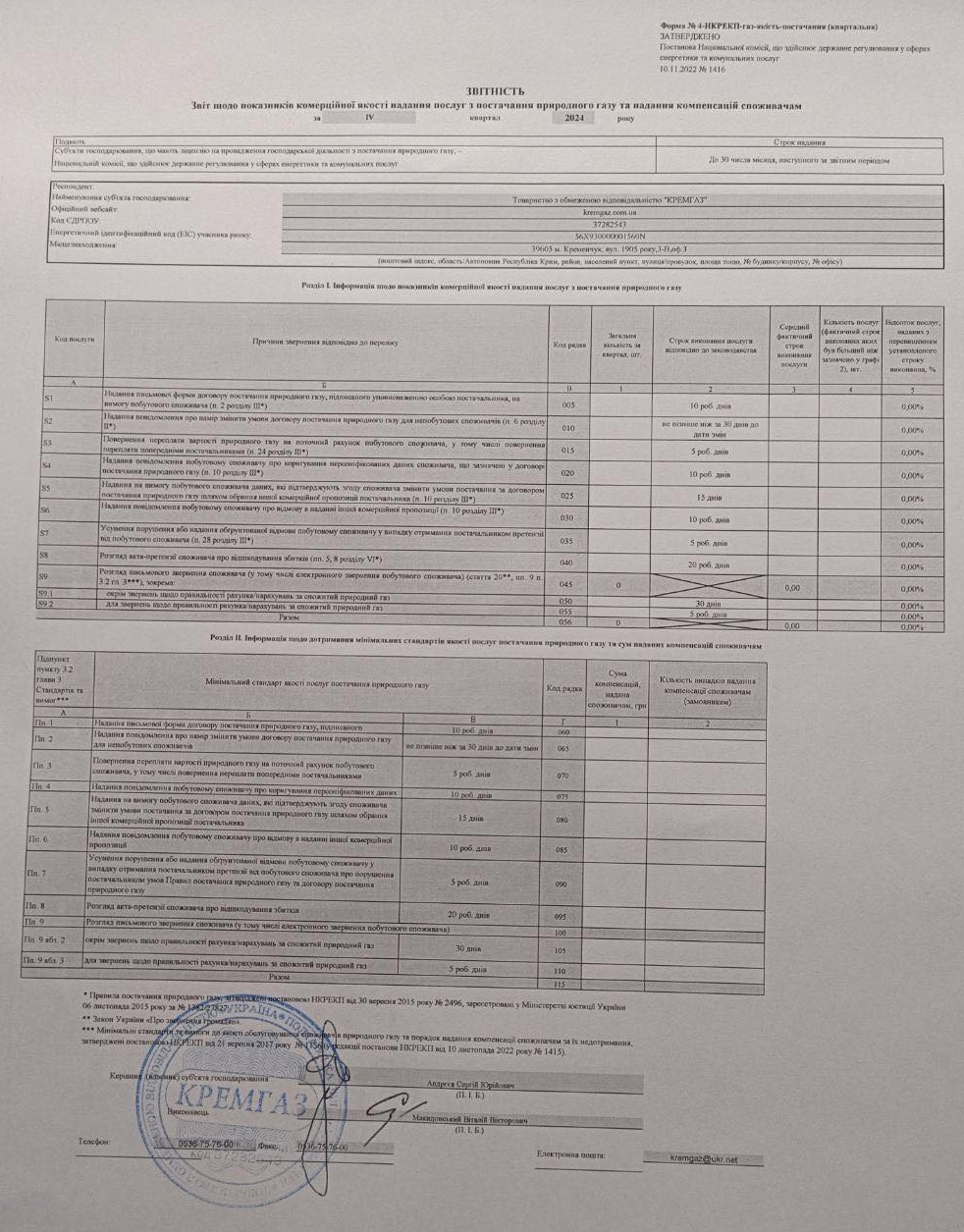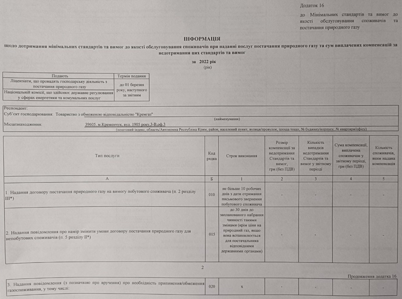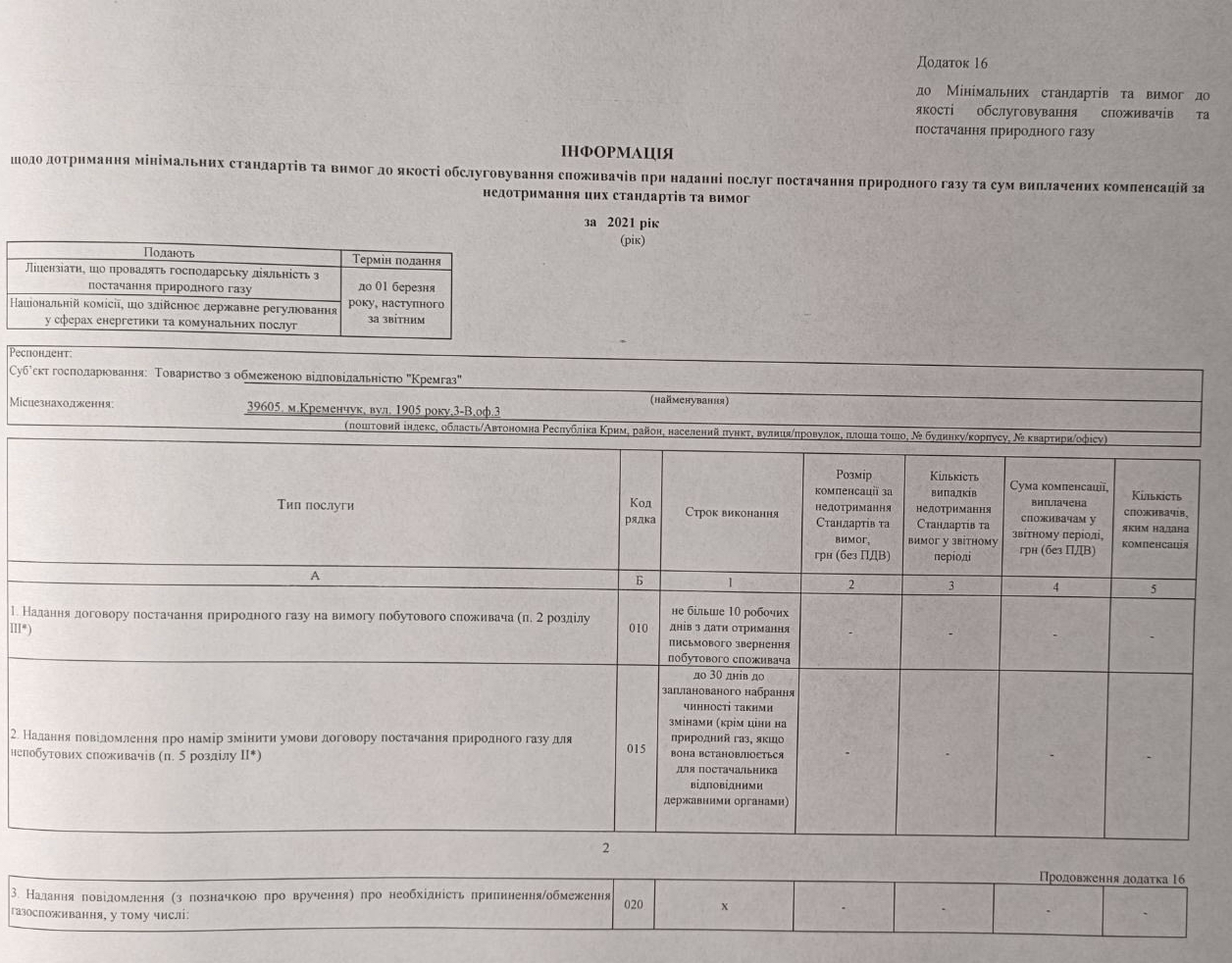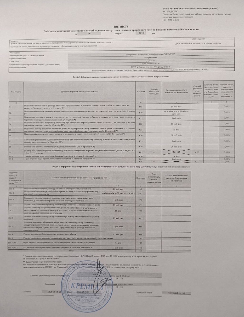(згідно Постанови НКРЕКП від 30.09.2015 року № 2496 «Про затвердження Правил постачання природного газу»)